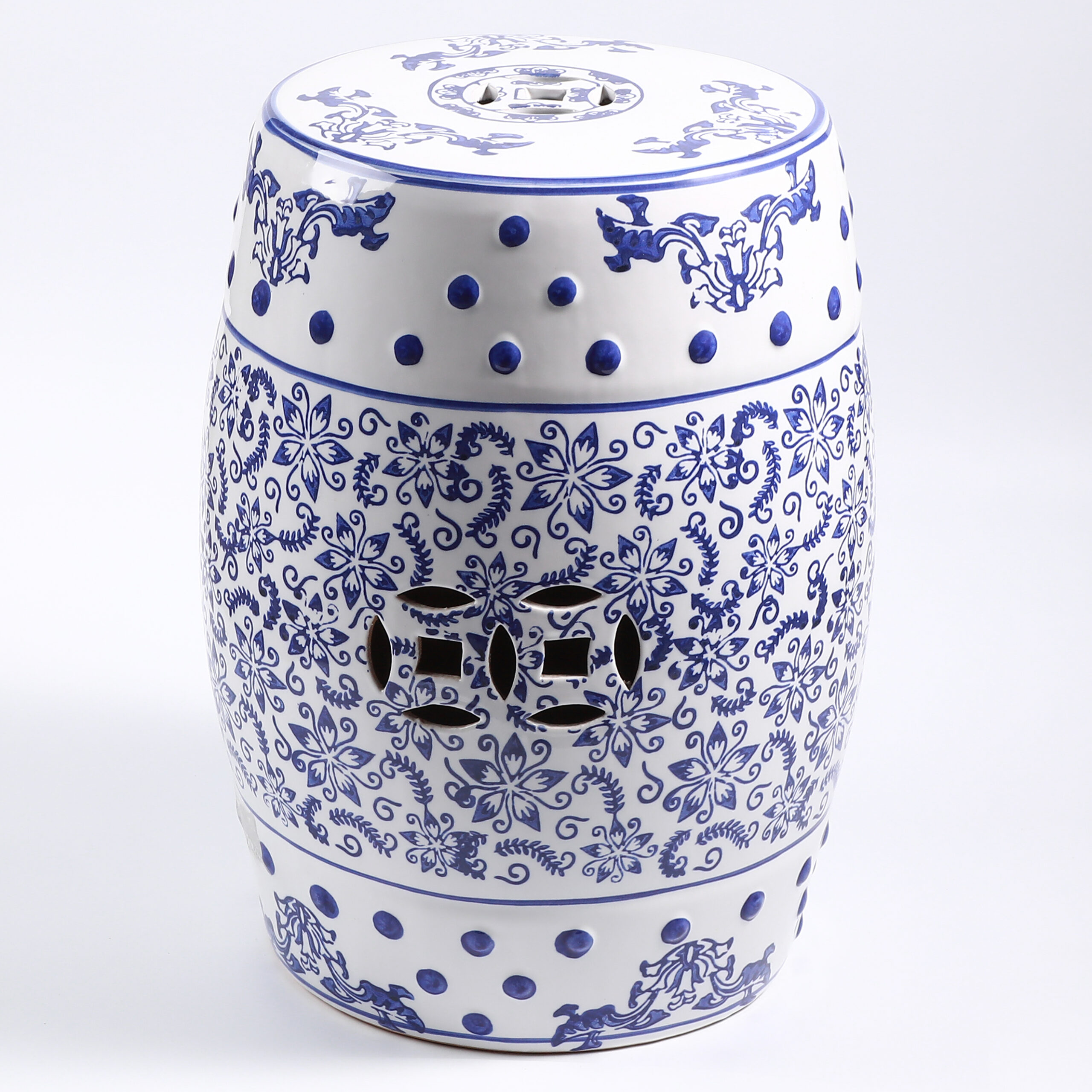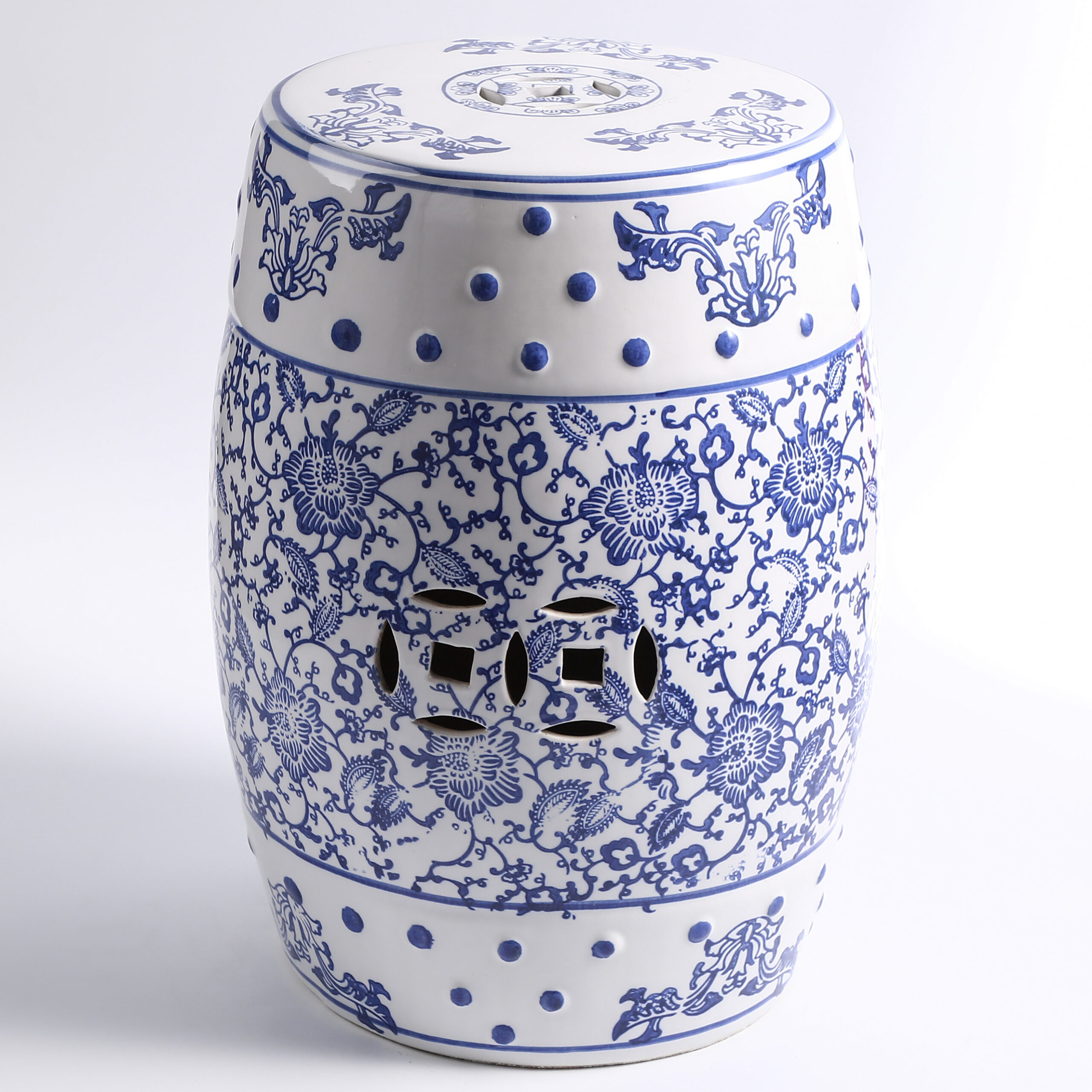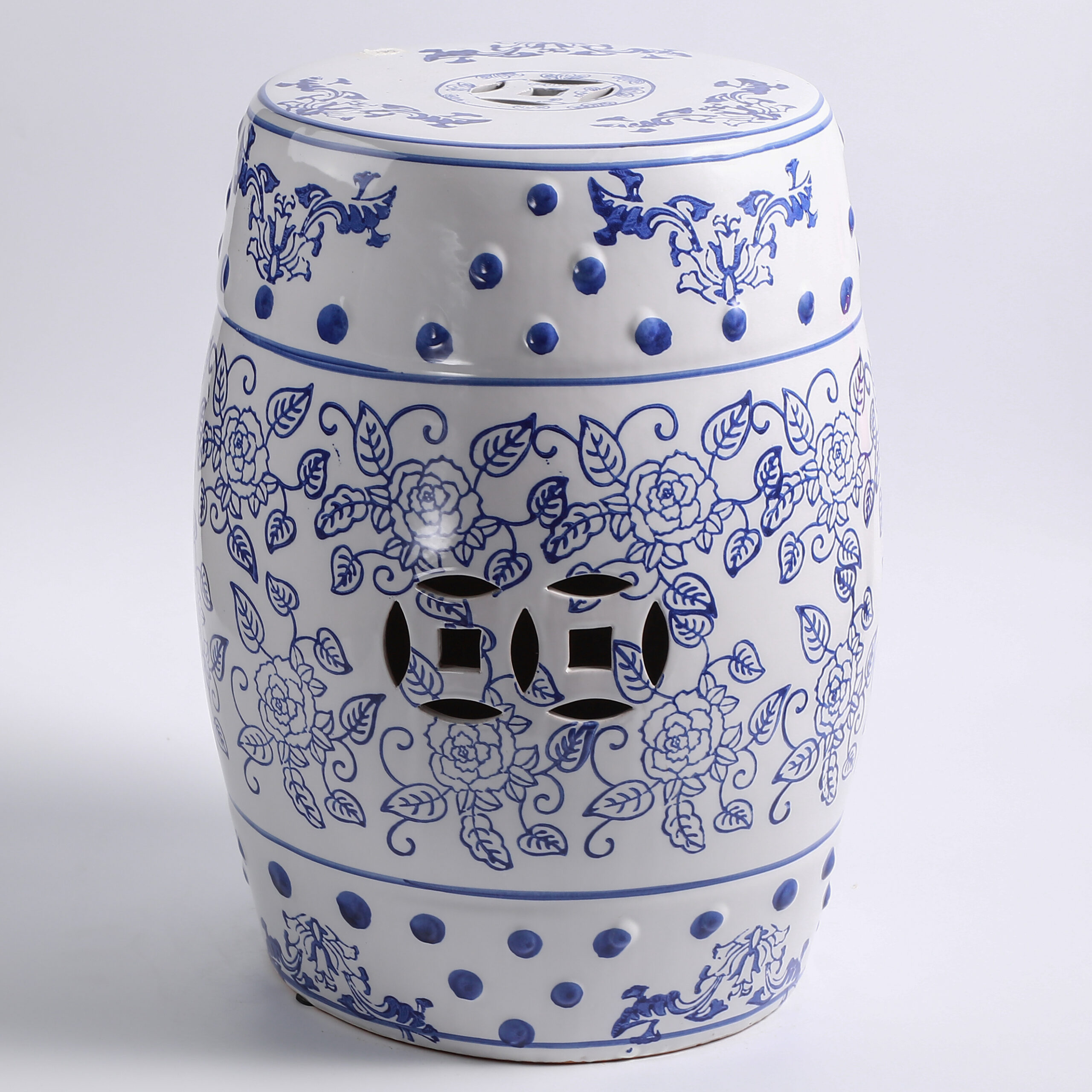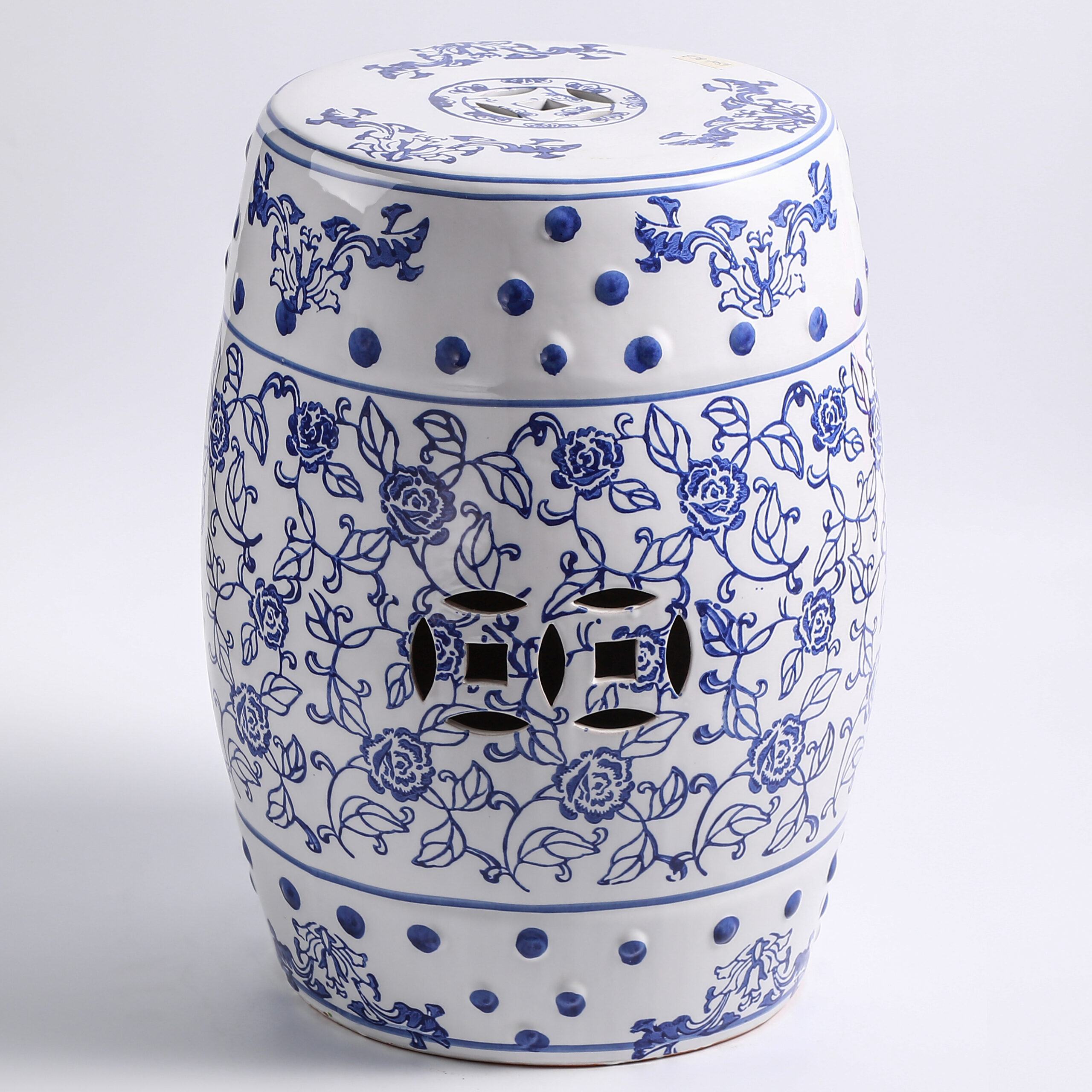 Elevate your space with this exquisite blue and white porcelain garden stool. Featuring a classic drum shape adorned with hand-painted landscapes of pavilions, rivers, and mountains, this stool blends traditional Chinese art with functional design. Perfect as a decorative accent, a practical side table, or a plant stand, it brings timeless oriental elegance to your home, garden, or patio.