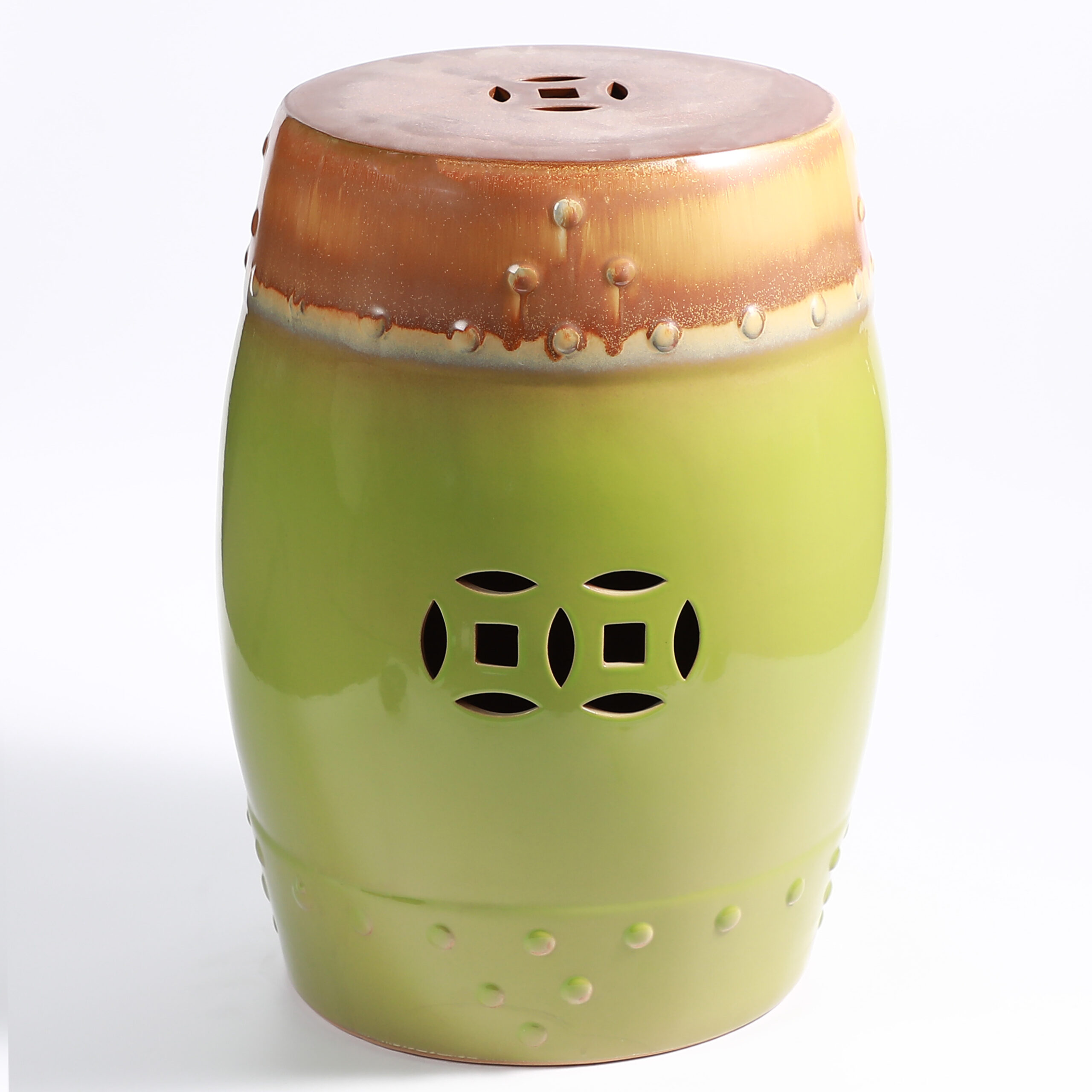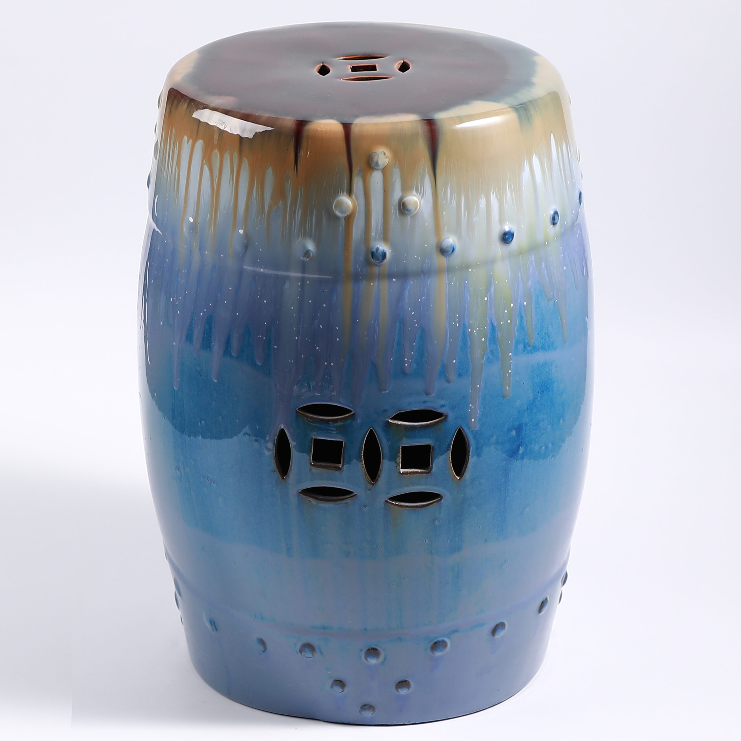 Glazed Gradient Ceramic Drum Stool with Coin Cutout
