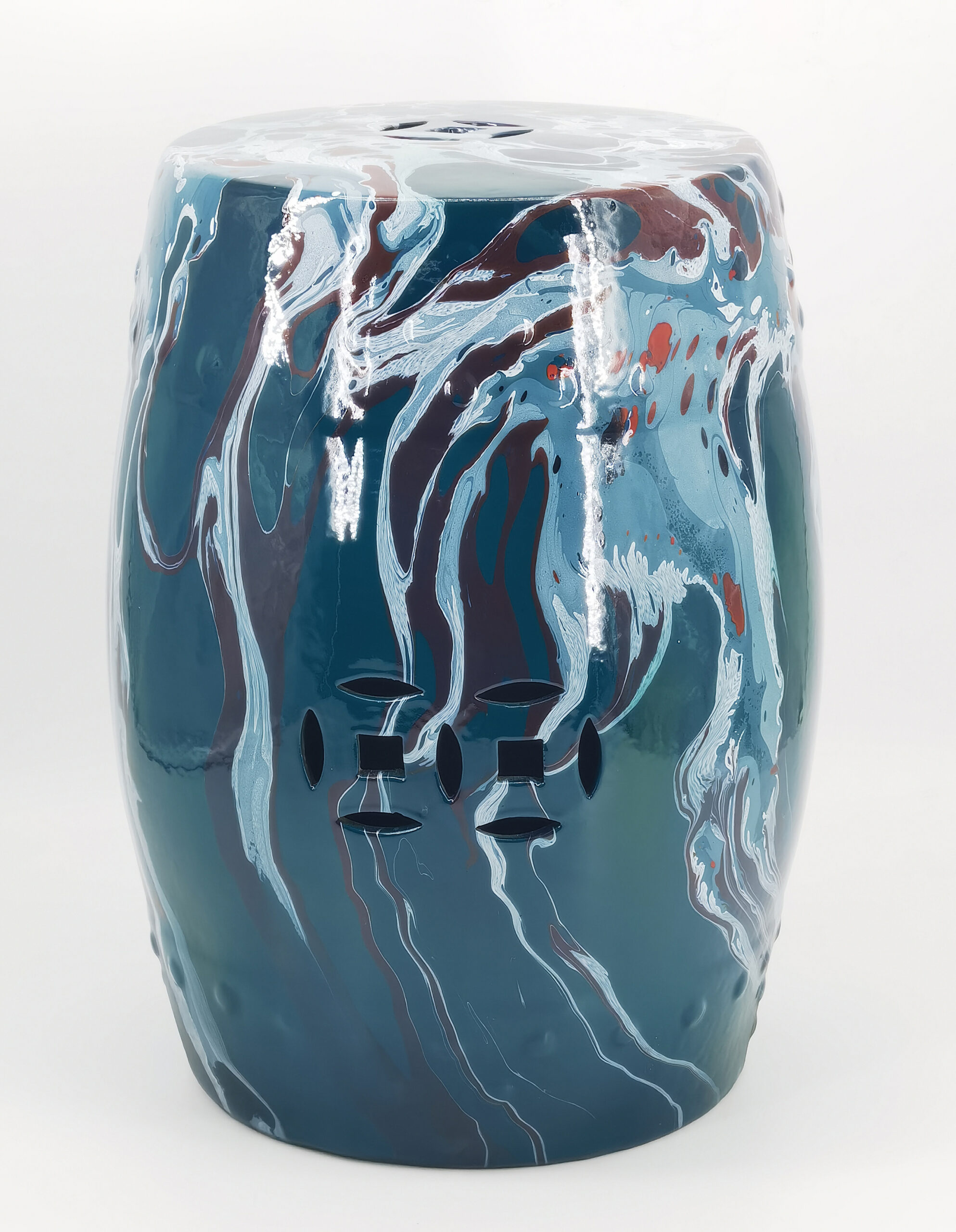 This exquisitely handcrafted ceramic drum stool perfectly integrates traditional oriental furniture silhouette with modern minimalist aesthetic.